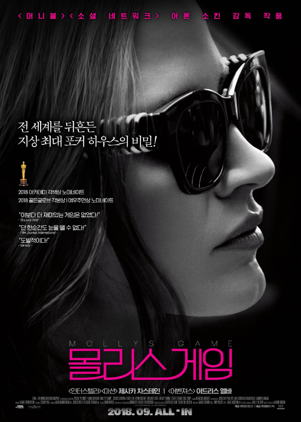"몰리의 게임"은 "소셜 네트워크"와 같은 영화에서 뛰어난 각본을 쓴 것으로 유명한 Aaron Sorkin이 감독한 매혹적인 영화입니다.